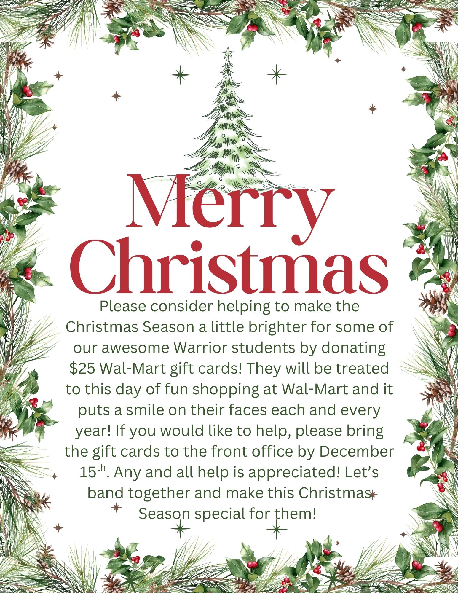 If you would like to help out some special Warriors this Christmas season, please see the attached flyer! ❤️💚 Any and all help is truly appreciated! We are thankful for our Warrior Family for alway...